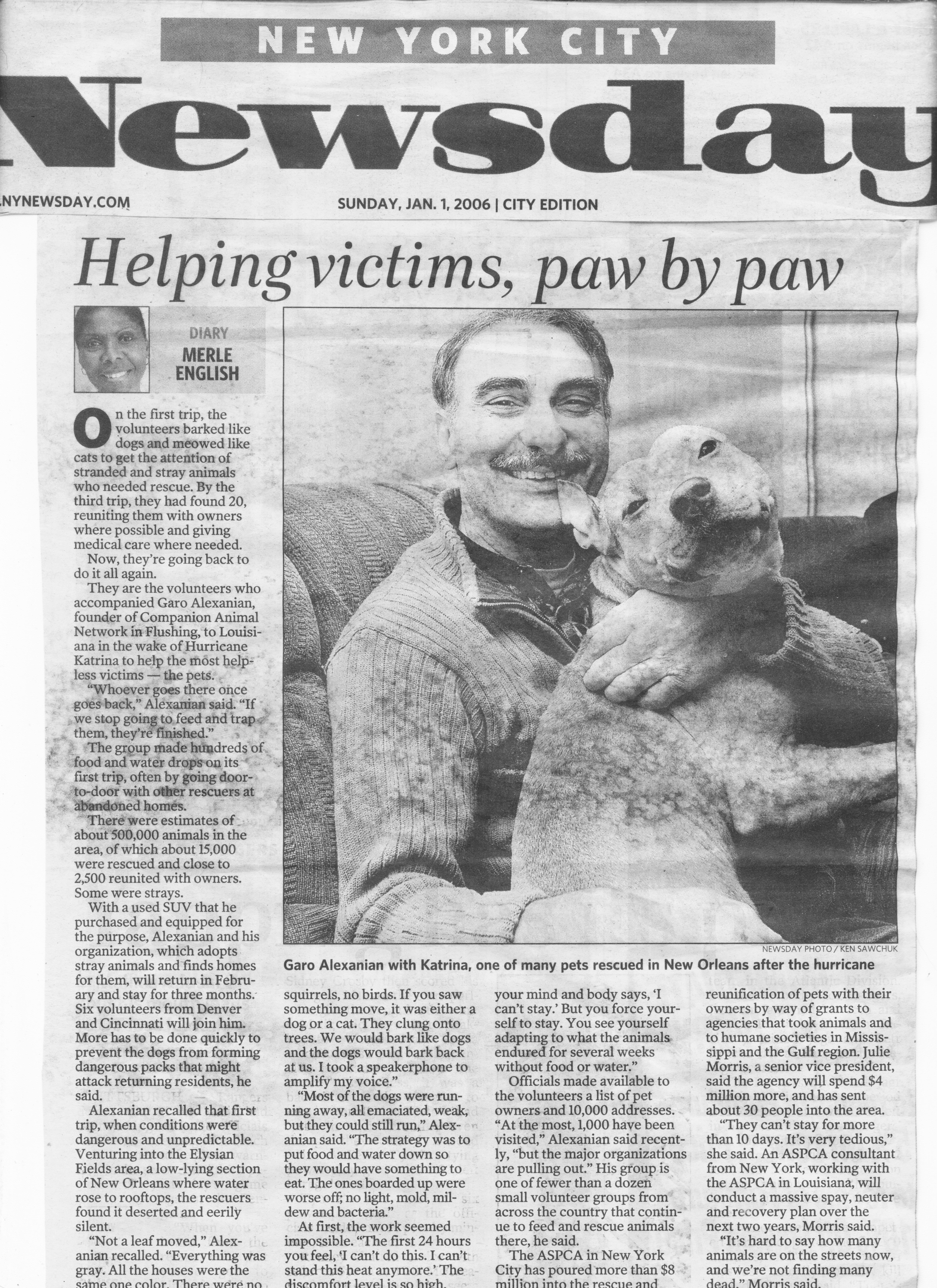 Twenty of the dogs and four cats were brought to the Associated Humane Societies shelter at the zoo. They'll be here for a long time, until they're adopted, Bergmann said. The animals arrived Tuesday morning. The rest of the animals in the truck were on their way to a shelter in New York. Garo Alexanian, executive director of the network, put the rescue operation together and drove the truck from Louisiana virtually nonstop to the northeast. He said he went down to New Orleans with volunteers from all over the country in the weeks after Katrina to help locate stranded animals. It was a life-changing experience. It was like being in a combat zone, said Alexanian, who added that he's still haunted by images of animals that died in abandoned homes waiting for their owners to return. Many pets were saved by the work of volunteers like Alexanian and organizations like the American Society for the Prevention of Cruelty to Animals. But as the months passed, and groups such as the ASPCA left the Gulf Coast, Alexanian said, many animal shelters have become unable to feed and water the dogs, cats and other creatures.
